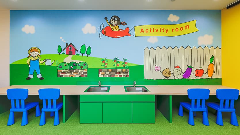 アクティビティルームはお子様にあったような内装でみんな楽しくトレーニングができます。